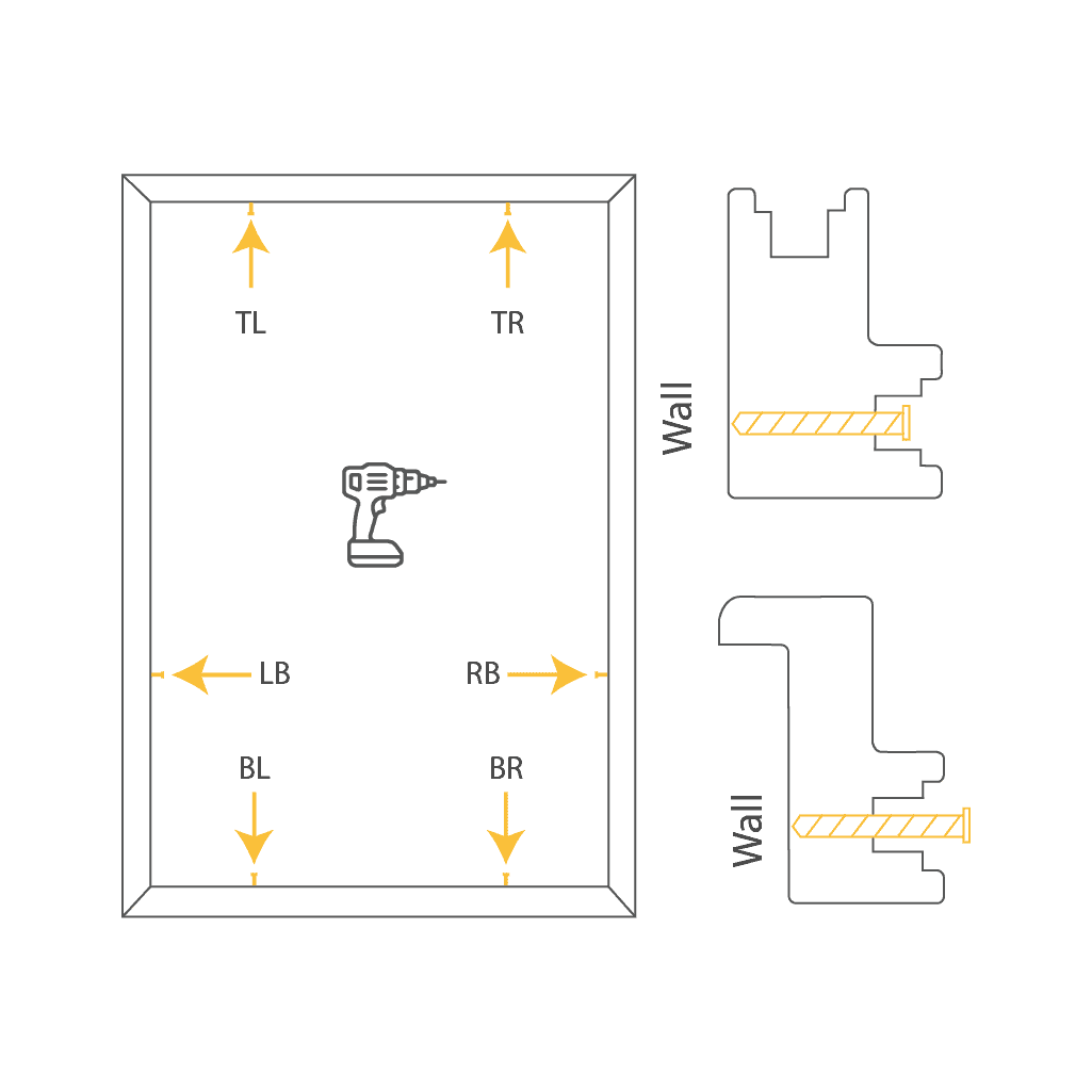 Frames will be labelled Left, Right, Top and Bottom. Lay the content on the floor.