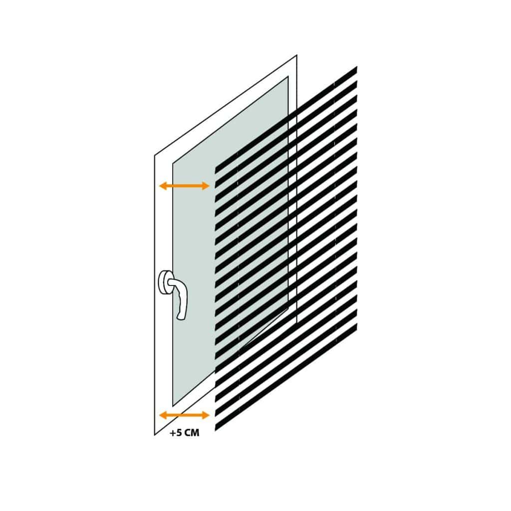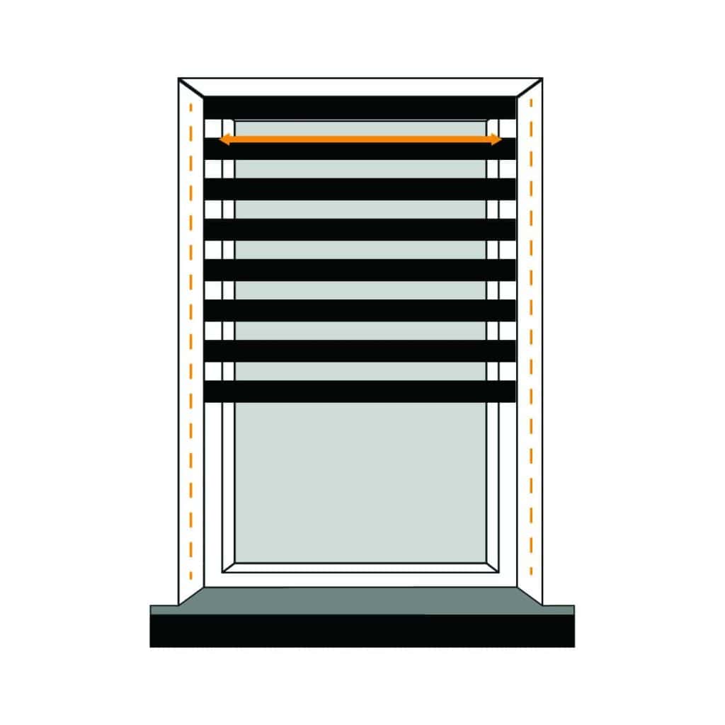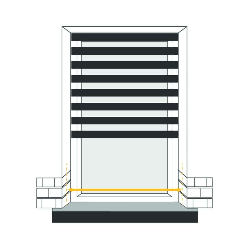 Determine the desired amount of overlap for your blind on both sides of the window recess, and measure this width accordingly. Keep in mind that due to the chain control and brackets, the fabric will be 35mm narrower than the specified size.