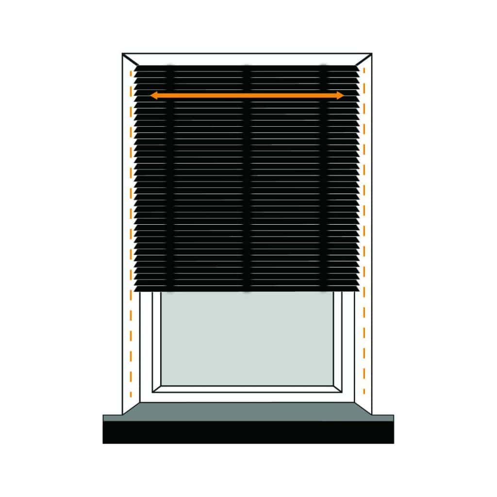 Determine the desired amount of overlap for your blind on both sides of the window recess, and measure this width accordingly. Keep in mind that due to the chain control and brackets, the fabric will be 35mm narrower than the specified size.