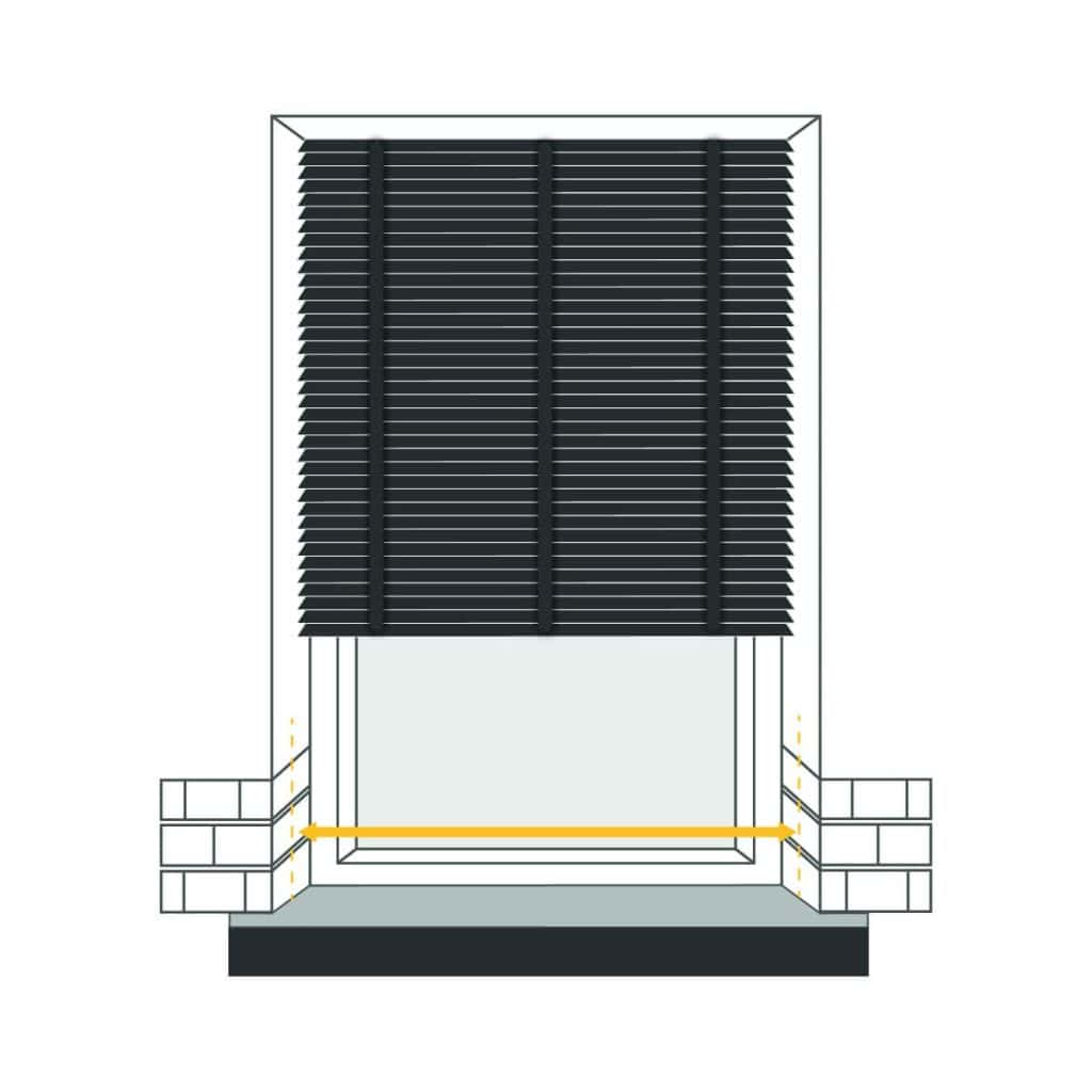 Take measurements of your window recess width at three positions: top, middle, and bottom, selecting the smallest measurement as your width.