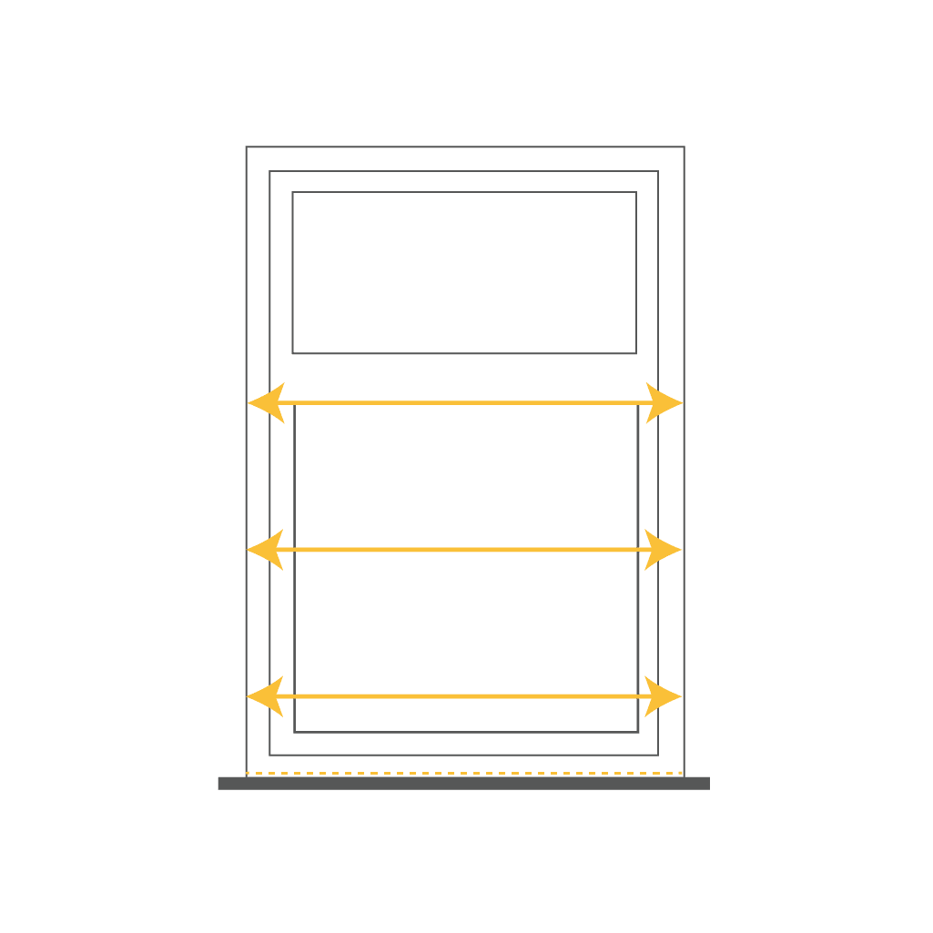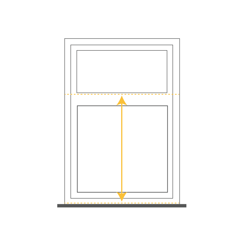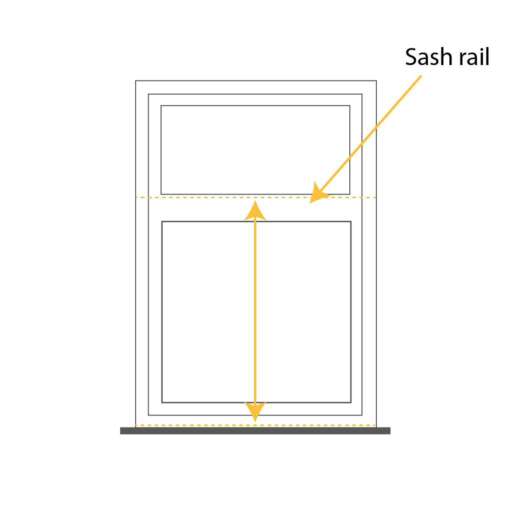 Measure from the bottom of the opening to the center or, for sash windows, to the break point. Then, deduct 2.5mm.